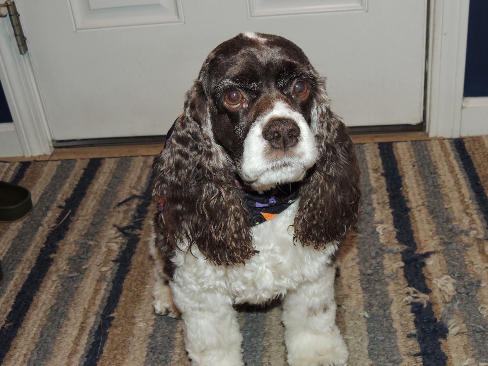 Today we find a beautiful groomed Coker. Yesterday she did not start off that way. Cinnamon began the morning with a visit to her vet Dr Amy Ruksznis of Topsham Wellness Veterinary clinic. Cinnamon has a hard time waiting in the room with so much going on in this busy clinic. It was good to see Dr Amy and her canine compainion Toby. But it to was sad to hear that on Tuesday this week her beloved dog Roxy had died of cancer. Cinnamon usually gets a greeting from Roxy and I think she might have been looking for her.